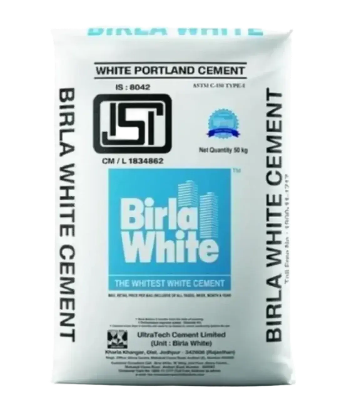 Birla White Cement is a premium white Portland cement with exceptional whiteness (+89% Hunter Scale) and 60 MPa compressive strength, designed for decorative and structural applications including mosaic tiles, terrazzo flooring, decorative plasters, and pigmented finishes.